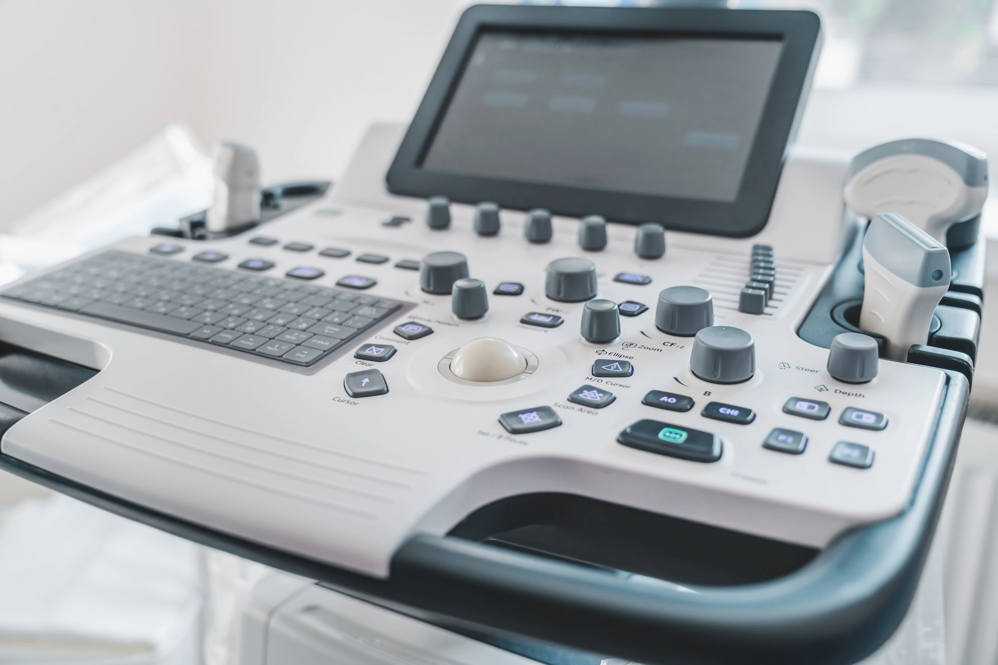- W zależności od zmiany położenia czujnika na ekranie urządzenia pojawiają się trójwymiarowe obrazy tkanek i narządów.